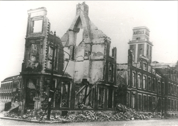 Mobilise ses collègues brasseurs pour la reconstruction de Louvain après les bombardements qui ont gravement endommagé la brasserie et les maisons des salariés.